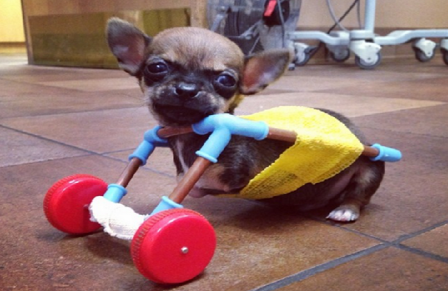 주인은 애완견용 휠체어를 만드는 곳에 도움을 청했고, 그들은 이 조그만 치와와 '터보'를 위해...