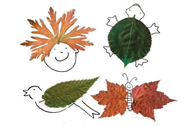 아래 사진을 참고해서 아이들과 함께 나뭇잎을 이용한 그림 그리기 활동을 해 보세요.